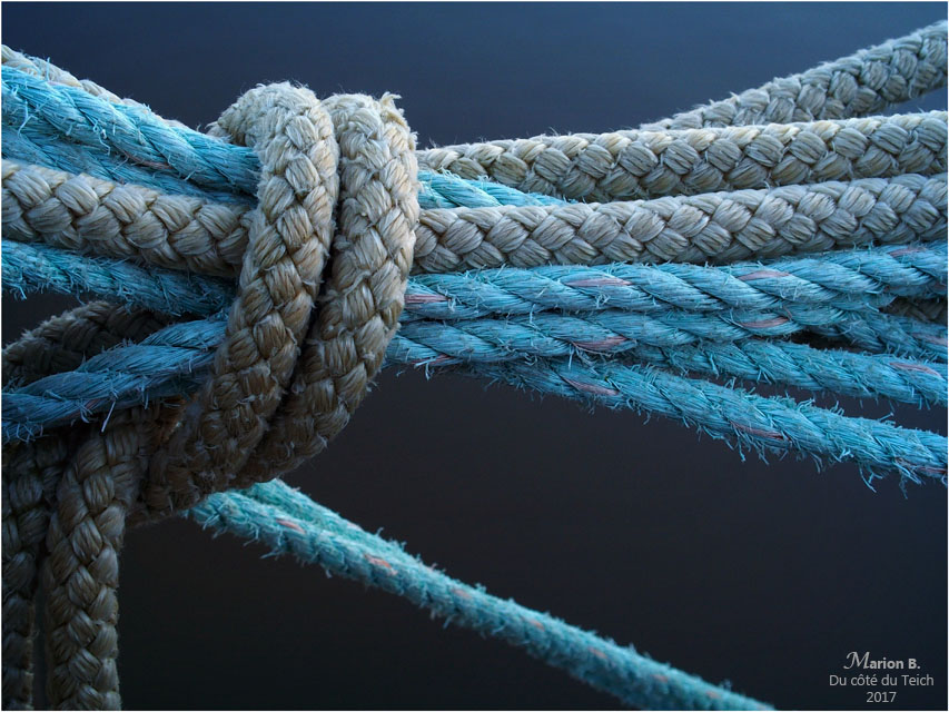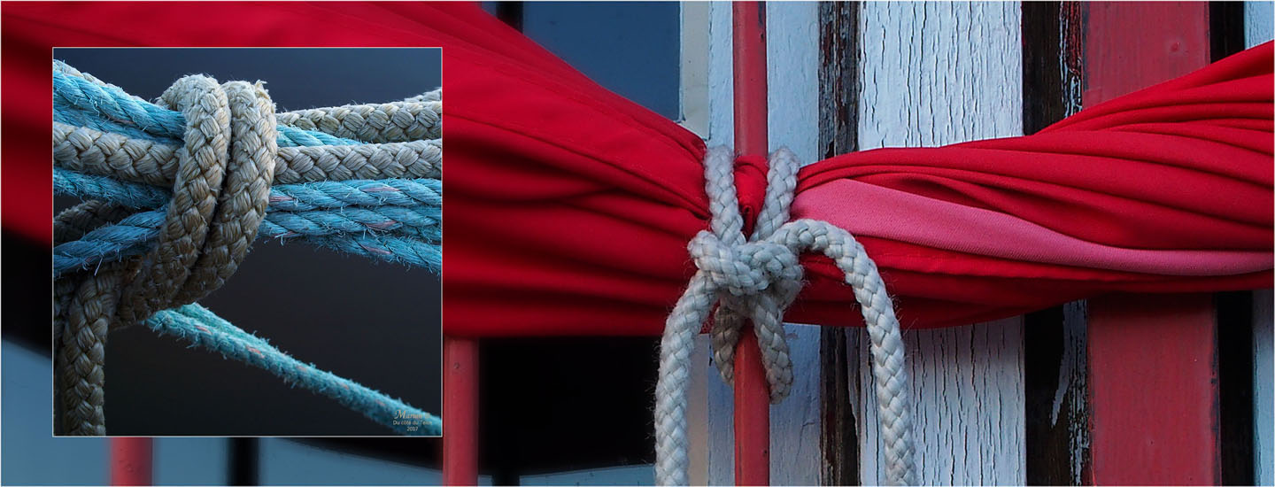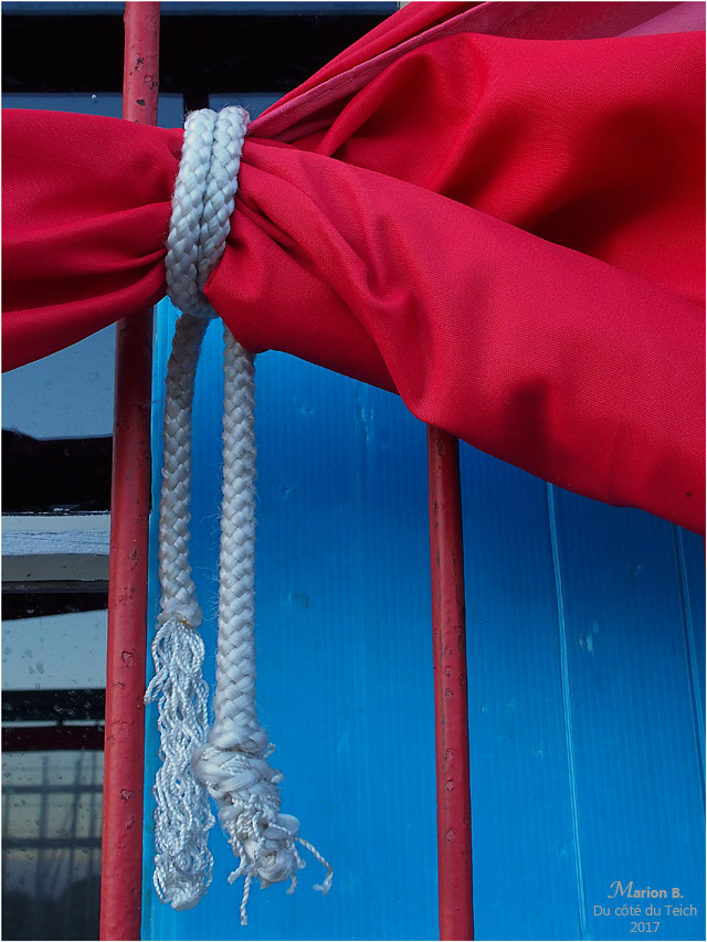 Indestructible (ou presque), cette vieille bâche, toujours en service sur un port. Cette année des bouts flambant neufs la maintiennent en place.