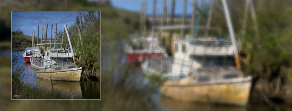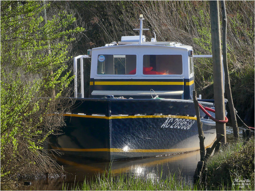 Venant du port de Rocher (la Teste), par le chemin du petit Bordes, nous arrivons au petit port de Bordes, « enclave gujanaise en territoire testerain » (voir article et vidéo TVBA d’Août 2024 – Un 8ème port à Gujan-Mestras ?) :