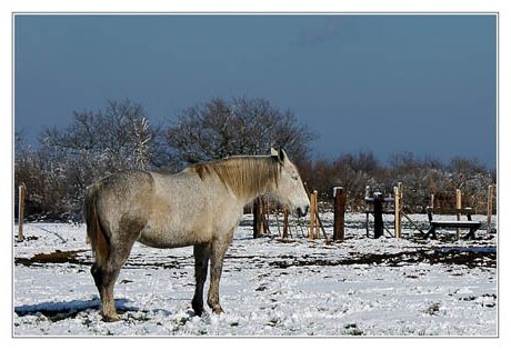 Toujours là, par tous les temps, dans l’herbe verte, la neige ou la boue… Ce cheval là me fait un peu pitié.