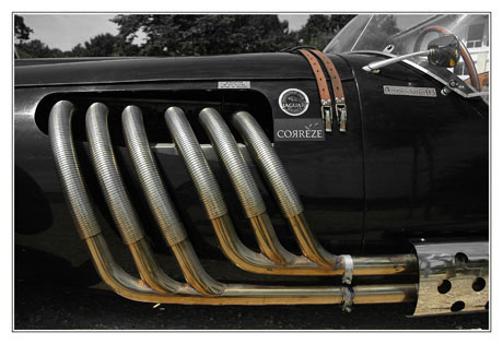 Propulsée par un 6 en ligne de 4.2 litres, vous l’aurez deviné en remarquant les imposantes tubulures d’échappement, la Ronart est un pur roadster sportif.