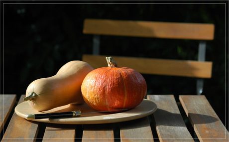 L’été indien au jardin, et quelques photos de ce potimarron et de cette courge, avant qu’ils ne passent à la casserole !