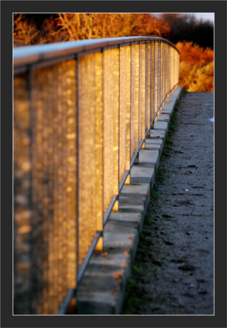 Ce matin, le pont neuf, sur la Leyre, au pied du tertre du Teich, au lever du soleil.