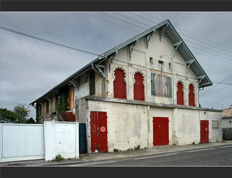 Je découvrais aujourd’hui cette bâtisse de style mauresque à Gujan-Mestras. Il s’agirait d’un cinéma, fermé depuis fort longtemps, mais je pencherais aussi pour un ancien théâtre… ayant d’ailleurs donné son nom à la rue.