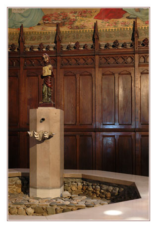 Le baptistère est de forme octogonale, permettant de plonger entièrement le baptisé dans l’eau, comme à l’origine de ce sacrement. Il n’existe que quatre baptistères de cette forme en France.