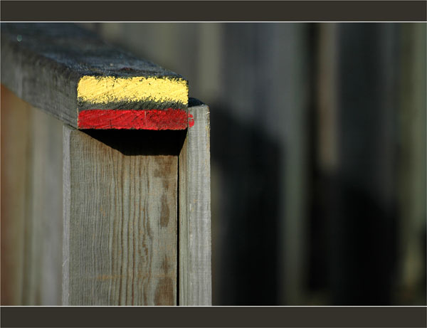 « Femmes au visage pâle » :razz: , oeil à l’affût, sur territoire non-pas des Sioux, comme pourrait le laisser croire ce balisage du sentier, mais de chasseurs aux pantes, très actifs ce matin à dresser les filets près des tonnes.