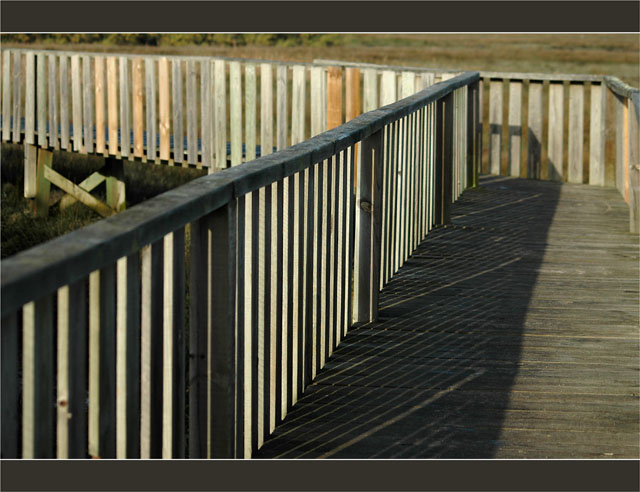 La passerelle du sentier du littoral,  les herbiers, le Bassin et Arcachon au loin :