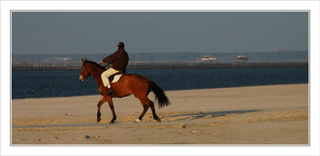 A la fin d’une bonne balade à Péreire, arrivée de cavaliers sur la plage. Un parapet pour tenter de se protéger du vent du nord, mais trop froid quand-même et séance photo écourtée !