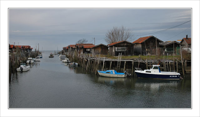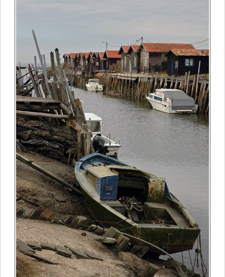Quelques pontons de plus en plus déglingués me dissuadent d’approcher du bord pour cadrer. Un ciel terne et gris… comme ces photos ! Mais une ambiance que j’aime bien , quand des bateaux rentrent au port le soir.