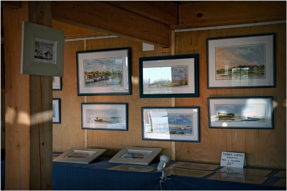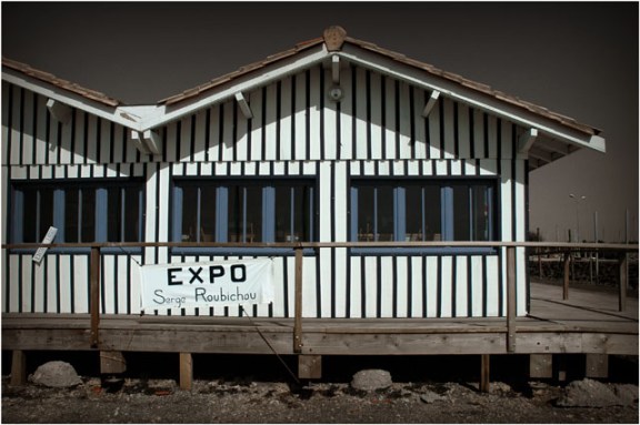 Jusqu’à Vendredi soir, Serge Roubichou expose ses encres (mon coup de coeur) et ses aquarelles, à la cabane bleue des artistes : rivages du Bassin d’Arcachon, pinasses, Tchanquées et aussi forêt des Landes constituent son univers.