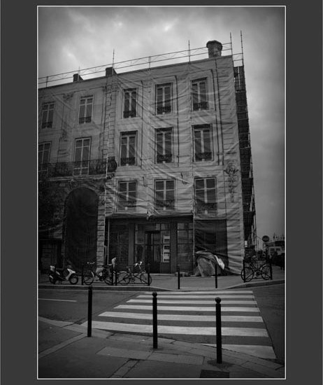 Bâche trompe l’oeil sur une façade en chantier, Bordeaux-Bastide