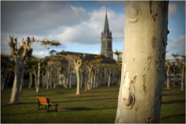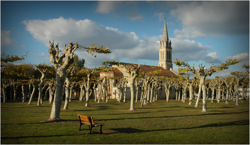 Ce matin, je suis passée à Audenge, et ai pris en photo les platanes de l’église…Demain je vais essayer, depuis Arcachon, de trouver les « tchanquées »!
