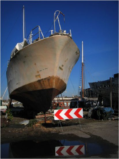 J’ai échangé quelques mots avec le propriétaire de la goélette Sinbad (1955), qu’on peut croiser l’été sur le Bassin d’Arcachon. Il restaure actuellement un 29ème bateau, fluvial celui-ci, la Bohème 1 (1950).