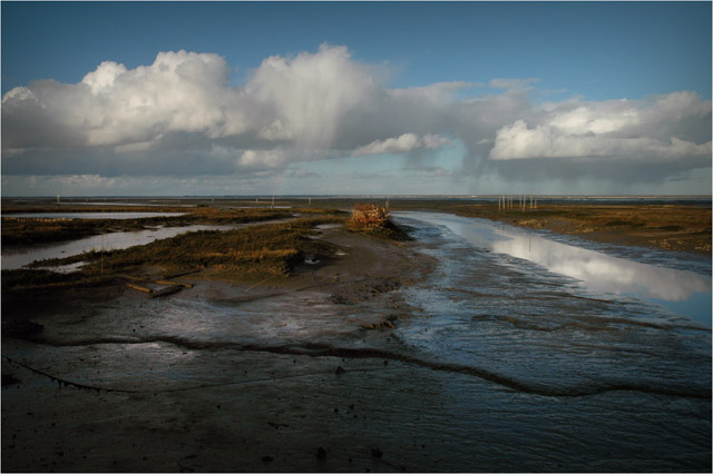 Suite de la balade sur un port quasiment désert : un ostréiculteur, 3 joueurs de pétanque, un chien..