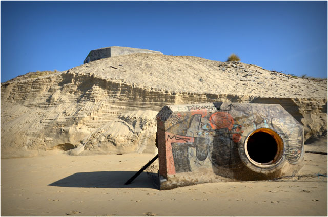 Sud de la pointe, regardant vers les blockhaus et l’océan :