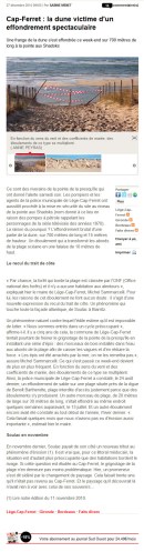 La pointe du Cap-Ferret qui a perdu 800 mètres en moins de 50 ans, a connu en Décembre dernier un effondrement spectaculaire.