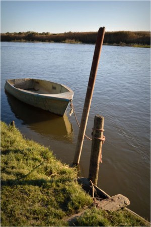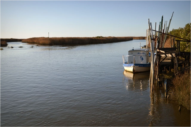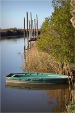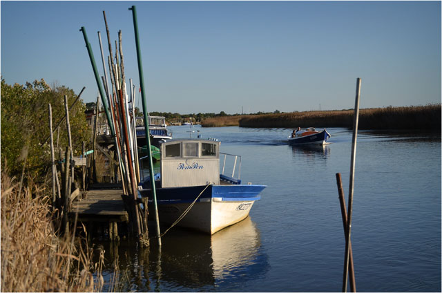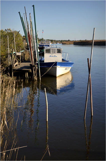 Chasseurs, plaisanciers, voilà pour l’ambiance de ce soir là. Et on retrouve la Calique, pinasse vue une heure auparavant au petit port, et qui descend maintenant la rivière.