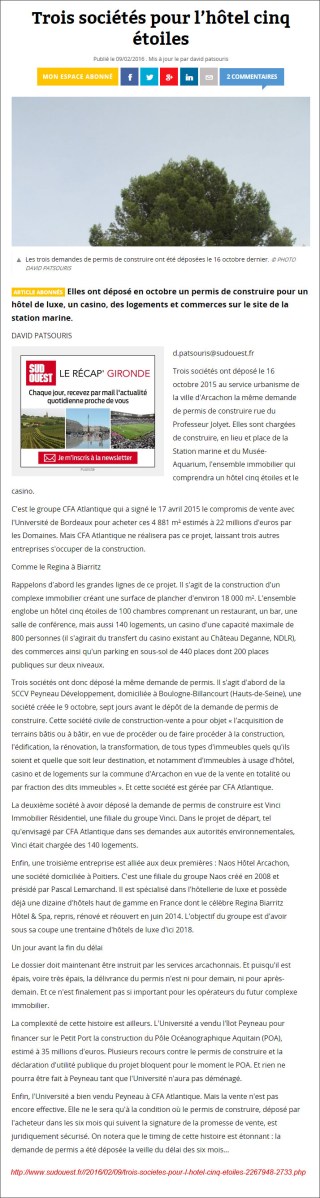 3 sociétés pour l’hôtel 5 étoiles – SO du 3 Février 2016 31 Mai 2016 714 × 2674 Musée-Aquarium d’Arcachon et POA : des nouvelles du front… de mer