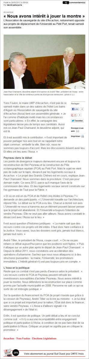ASSA et projet POA – Nous avons intérêt à jouer la montre – Sud-Ouest du 29 Mai 2012 17 juillet 2012 501 × 2024 Musée-Aquarium d’Arcachon et POA : des nouvelles du front… de mer