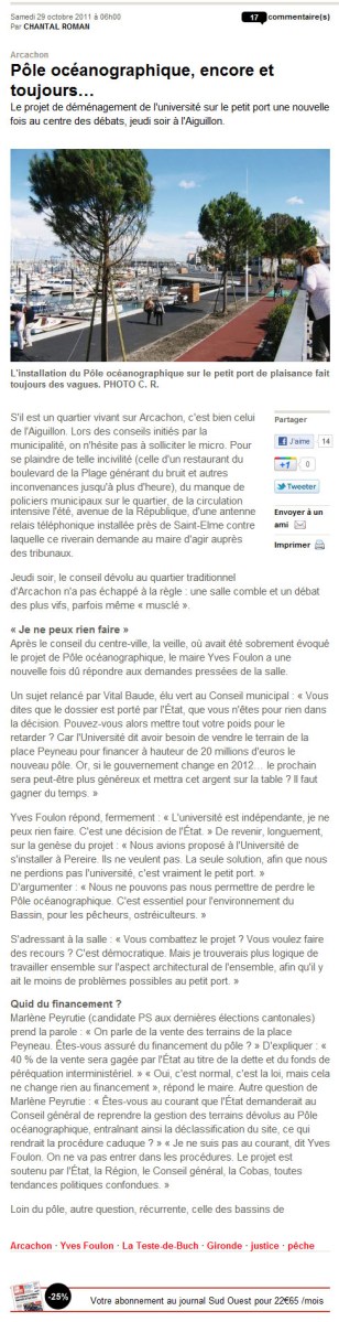 Le projet de déménagement de l’université sur le petit port une nouvelle fois au centre des débats – Sud-Ouest du 29 Octobre 2011 6 novembre 2011 488 × 1900 Musée-Aquarium d’Arcachon et POA : des nouvelles du front… de mer