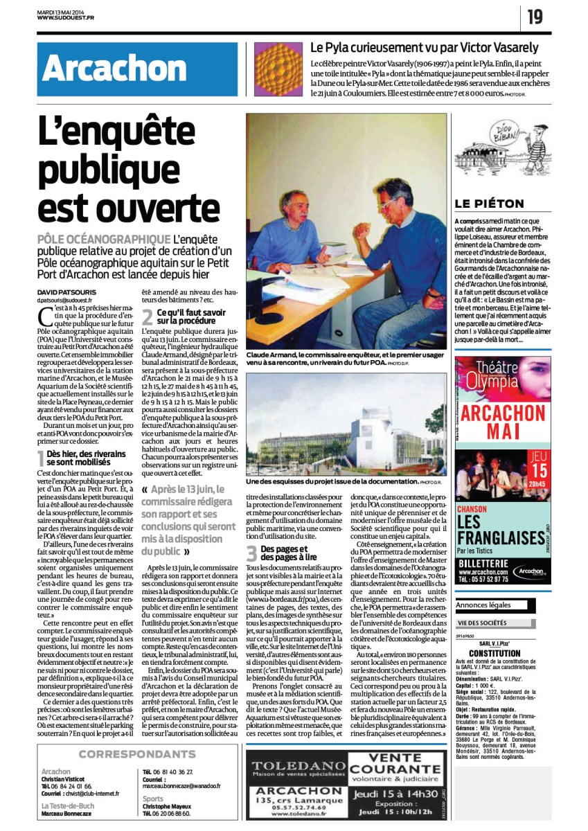L’enquête publique est ouverte – Sud-Ouest du 13 Mai 2014 13 Mai 2014 1231 × 1740 Musée-Aquarium d’Arcachon et POA : des nouvelles du front… de mer