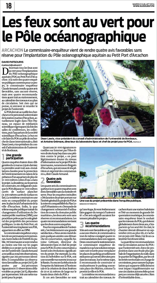 Les feux sont au vert pour le POA – Sud-Ouest du 22 Juillet 2014 22 juillet 2014 882 × 1581 Musée-Aquarium d’Arcachon et POA : des nouvelles du front… de mer