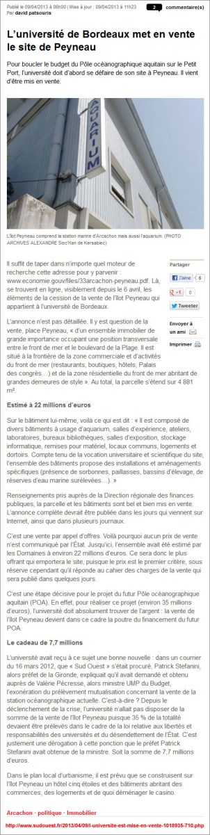 L’université de Bordeaux met en vente le site de Peyneau 9 avril 2013 490 × 1950 Musée-Aquarium d’Arcachon et POA : des nouvelles du front… de mer