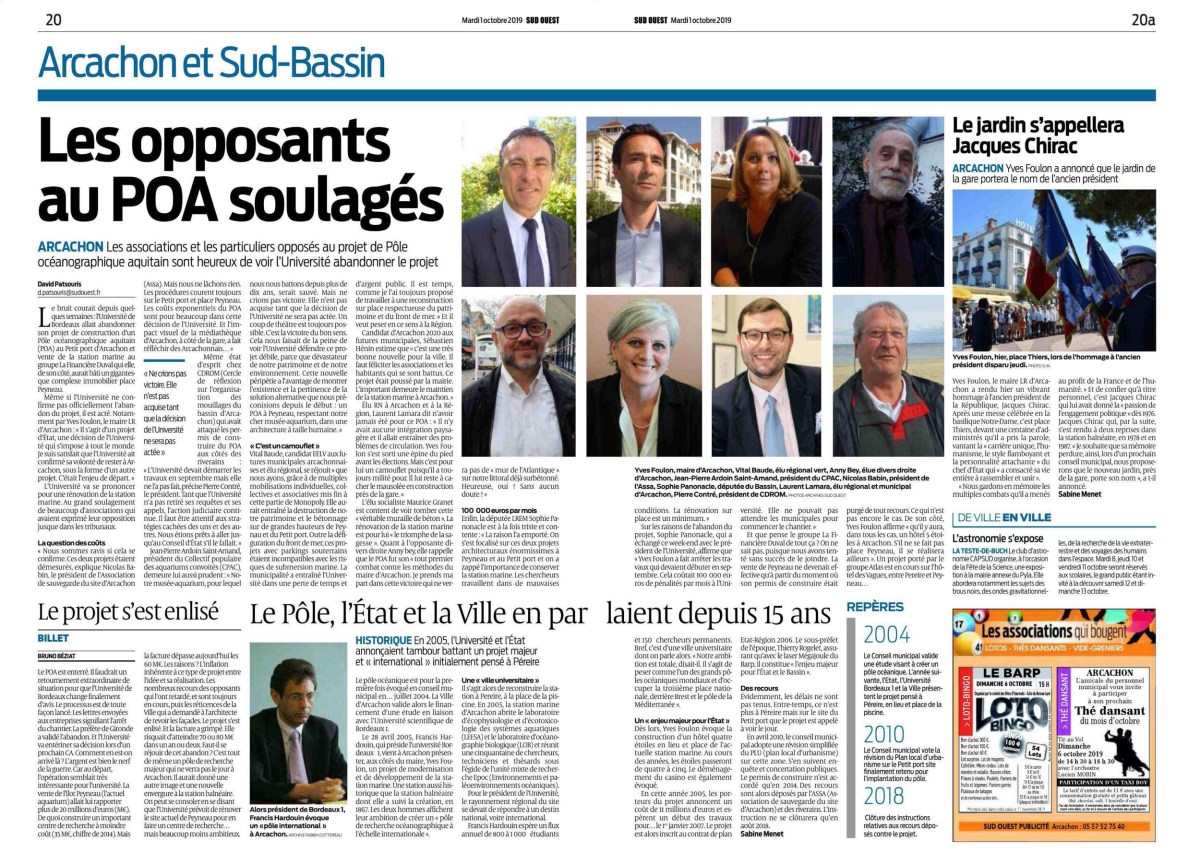 Opposants au POA soulagés – p20 – Sud-Ouest 1er Octobre 2019 1 octobre 2019 2500 × 1778 Musée-Aquarium d’Arcachon et POA : des nouvelles du front… de mer