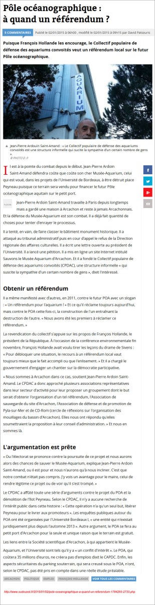 POA, à quand un référendum – Sud-Ouest du 2 Janvier 2015 25 janvier 2015 692 × 2690 Musée-Aquarium d’Arcachon et POA : des nouvelles du front… de mer
