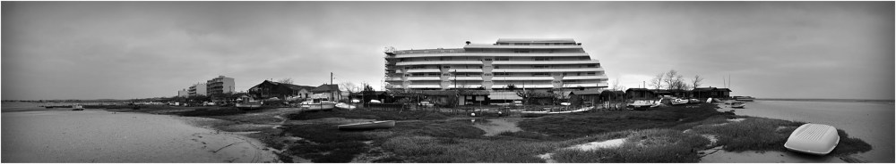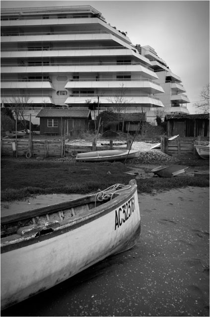 1. Adieu cabane, petites embarcations, et tout ce qui faisait le charme de l’aiguillon, comment a t’on pu autoriser la construction de cette « mastodonte » qui gache la vue du plus loin que l’on puisse le voir, il parait en plus que les gens ne s’y plaisent pas !