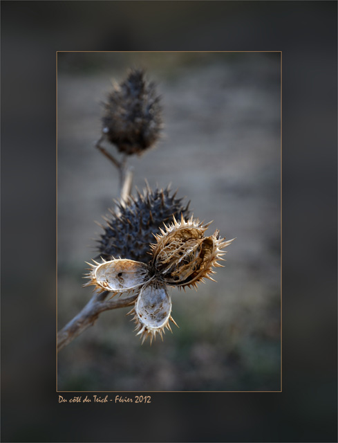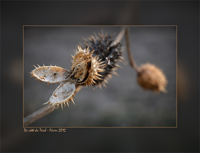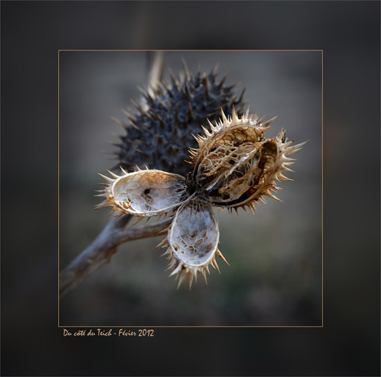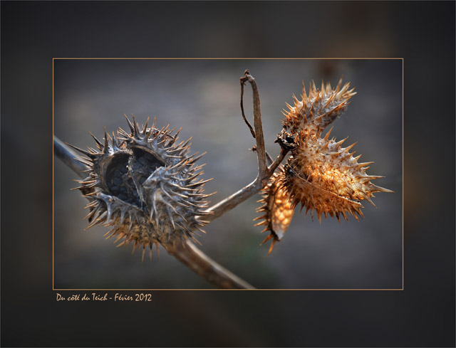 Nature, faune et flore Un froid qui pique ! Marion B.9 février 201213 juin 2025 13 Commentaires Fruits de datura stramoine, près de l’étang, au Teich 44.676402 -1.116117 J’aime chargement…
