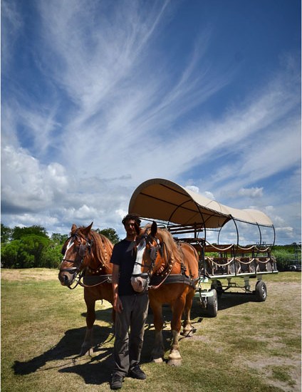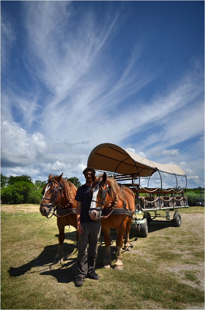 Calèche d’Amazone, sur les bords de la Leyre, près du pont neuf