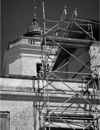 Echafaudages et tôles de protection du château,