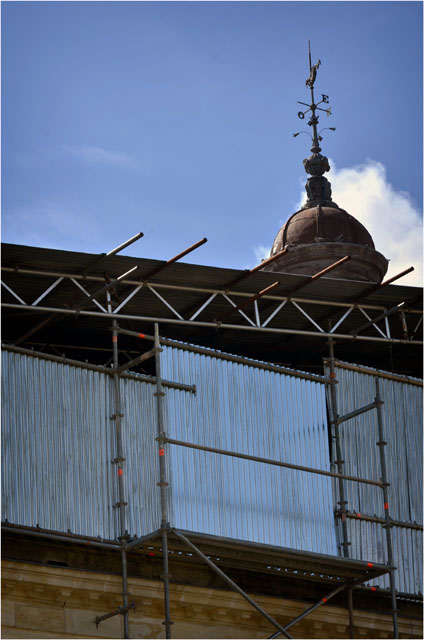 BLOG-DSC_15694-échafaudages et toles ondulées château Certes Août 2012 B 6 août 2012 424 × 640 Château de Certes : protection renforcée ! Août 2012 : Renforcement du parapluie