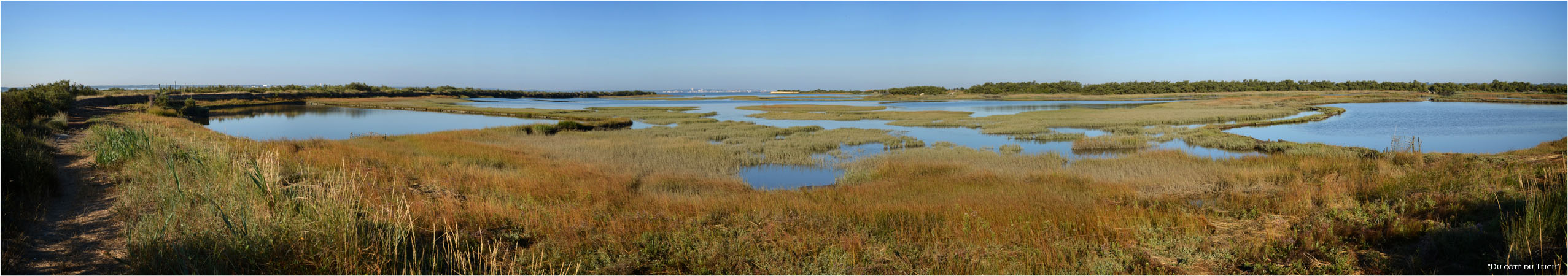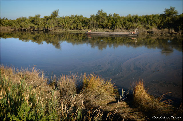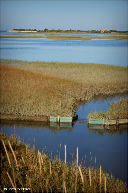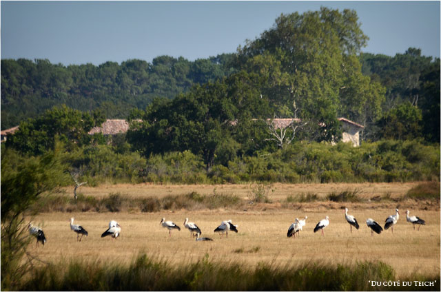 Après avoir longé le chenal de Certes, suite de la balade sur la boucle de Graveyron : rivages du Bassin, face à Arcachon et réservoirs à poissons à proximité du port d’Audenge ; quelques vaches de la ferme de Graveyron et une forte concentration d’oiseaux ce matin (cigognes, aigrettes garzette, mouettes et goélands, pigeons, hérons…), en raison paraît-il, de travaux de réfection des digues et de l’assèchement d’autres réservoirs.