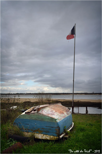 BLOG-DSC_19204-barque retournée et drapeau rivages Aiguillon Arcachon 24 janvier 2013 424 × 640 Vague éclaircie sur les bateaux de l’Aiguillon