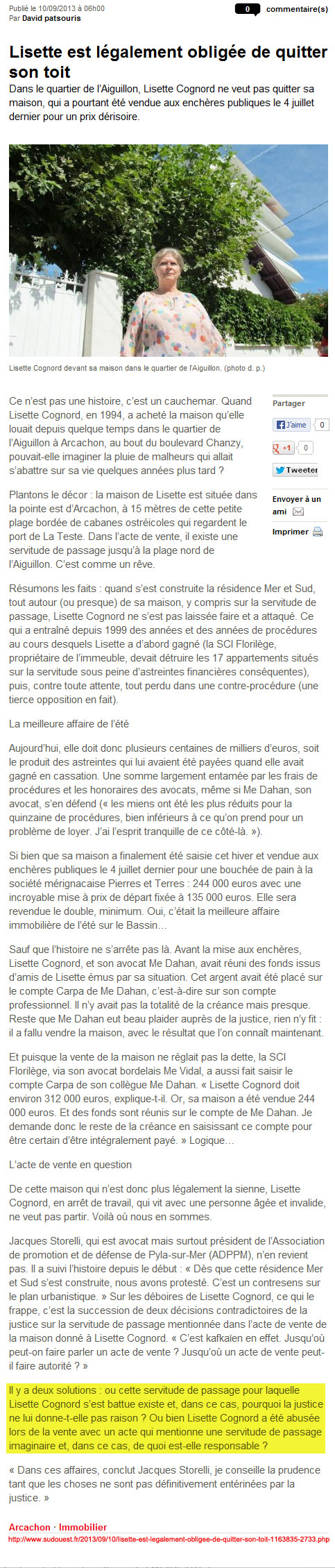 Lisette est légalement obligée de quitter son toit – Sud-Ouest du 10 Septembre 2013 22 février 2014 483 × 2259 Architecture de Pointe… et nouvelle pointe d’amertume