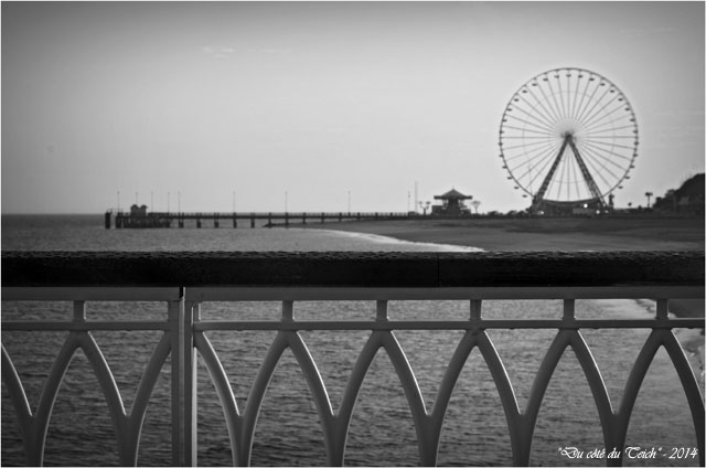 BLOG-DSC_26492-manège et roue place Peyneau et jetée Eyrac Arcachon N&B 11 janvier 2014 640 × 424 La grande roue d’Arcachon (N&B)