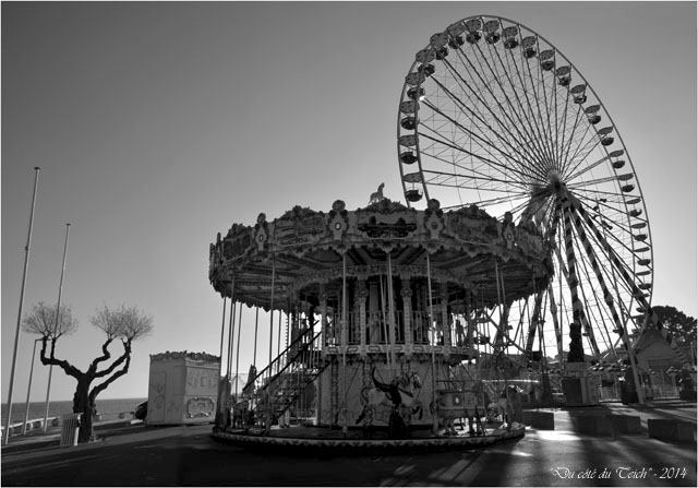 BLOG-DSC_26524-25-manège et grande roue place Peyneau Arcachon N&B 12 janvier 2014 640 × 447 La grande roue d’Arcachon (N&B)