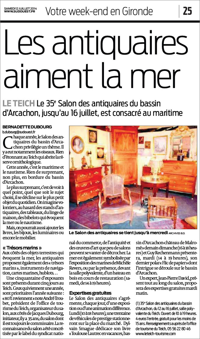 Les antiquaires aiment la mer – Sud-Ouest du 12 Juillet 2014 16 juillet 2014 656 × 1109 Les antiquaires font salon en bord de mer…