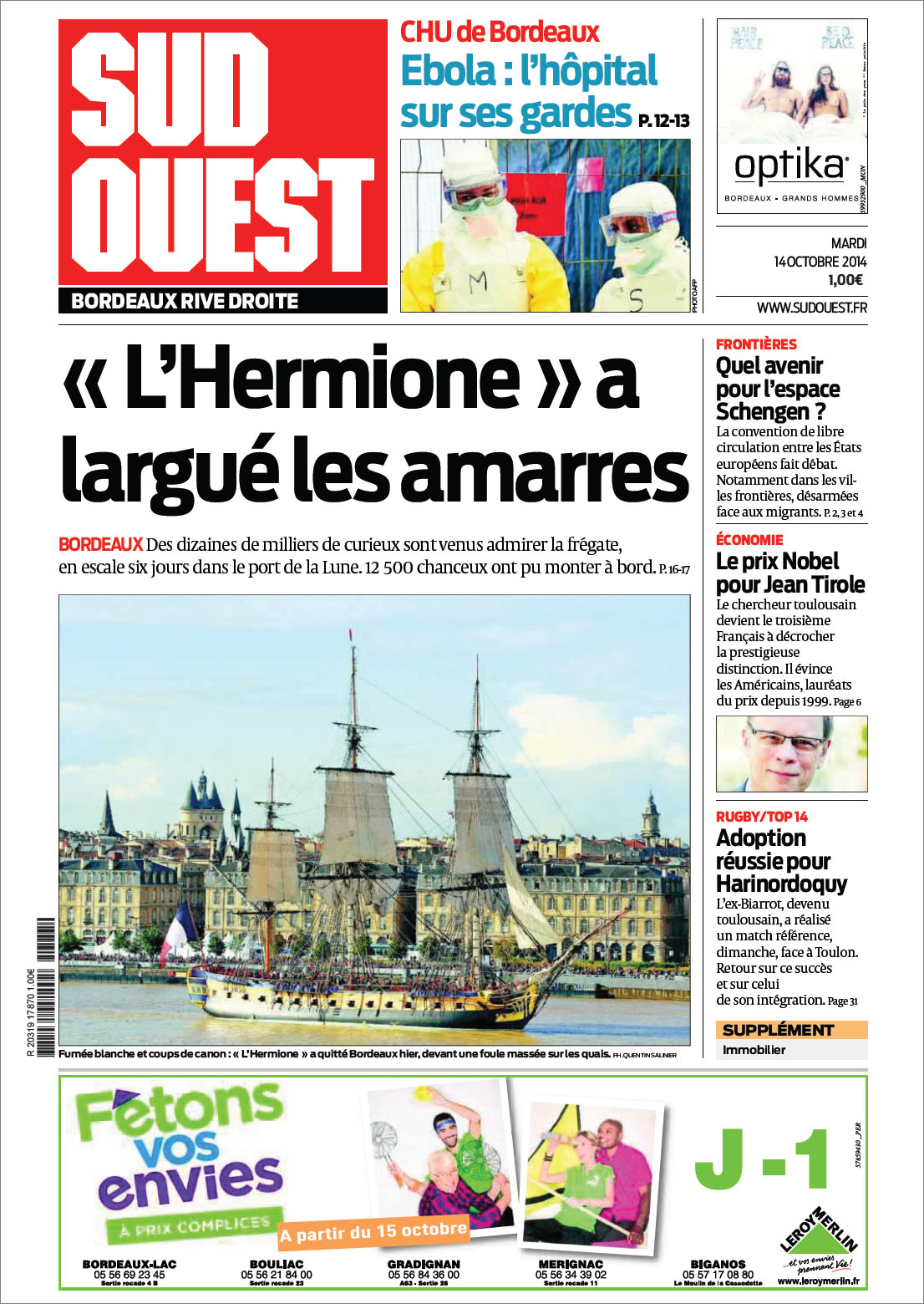 Hermione une Sud-Ouest 8 Octobre 2014   Hermione pages 11 & 12 Sud-Ouest 8 Octobre 2014 Hermione pages 16 & 17 Sud-Ouest 8 Octobre 2014.