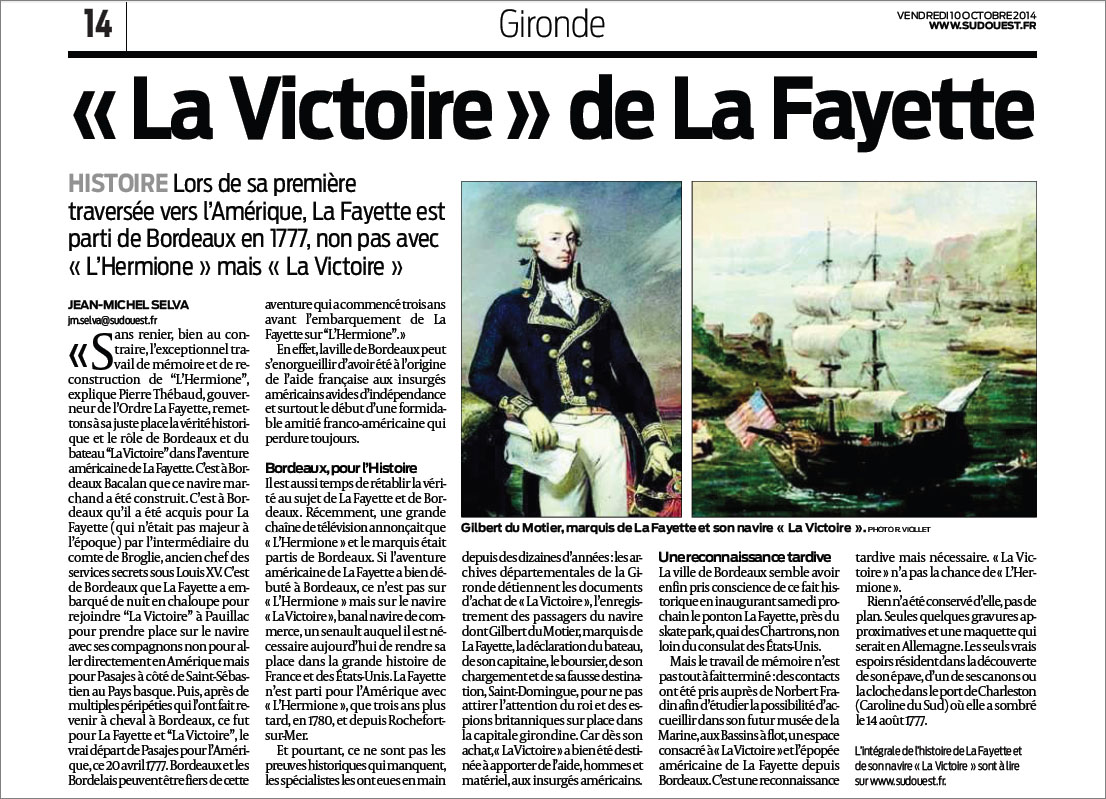 'La Victoire' de La Fayette - Sud-Ouest du 10 Octobre 2014.