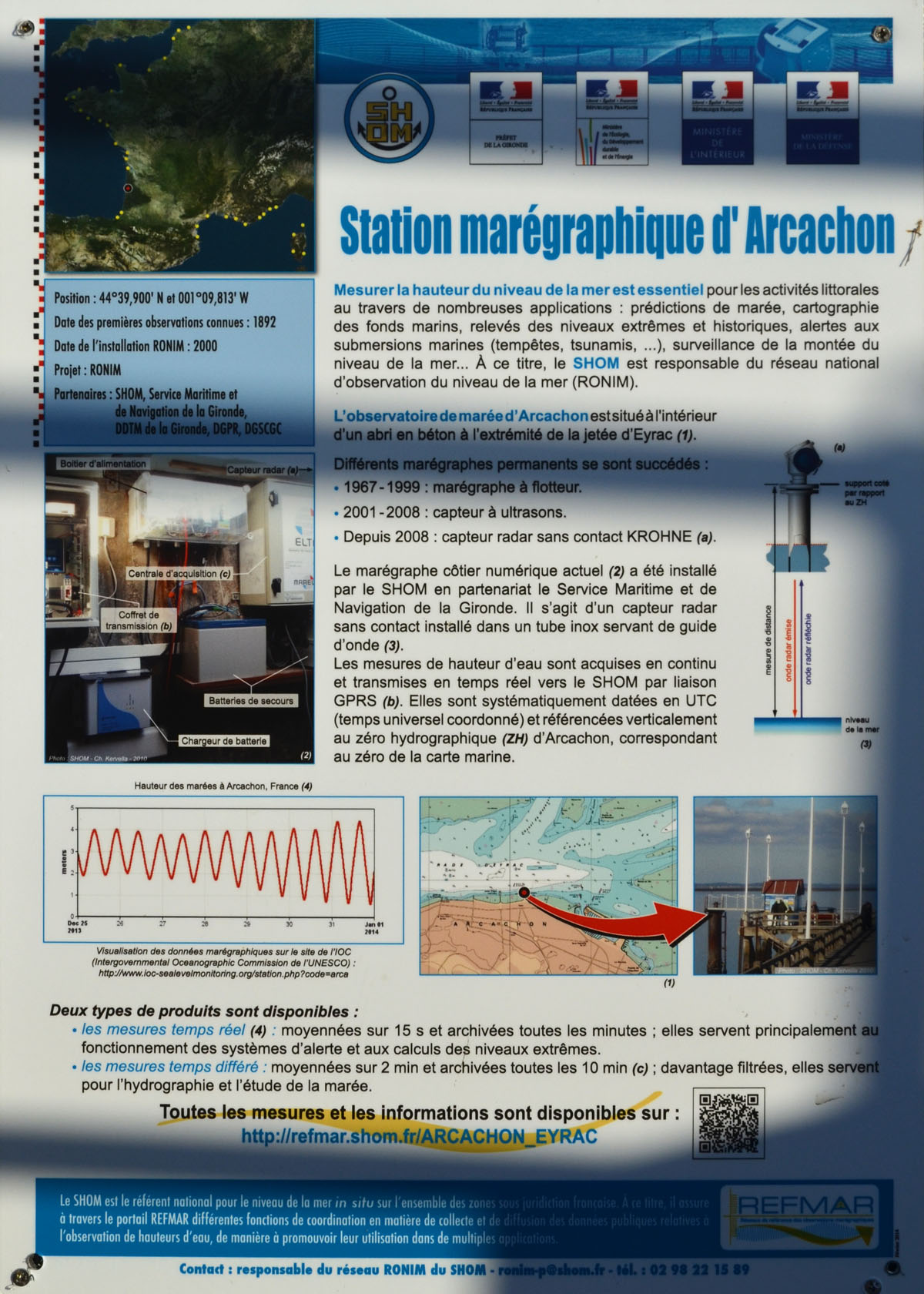 Station marégraphique de la jetée d’Eyrac, face à la station marine d’Arcachon :