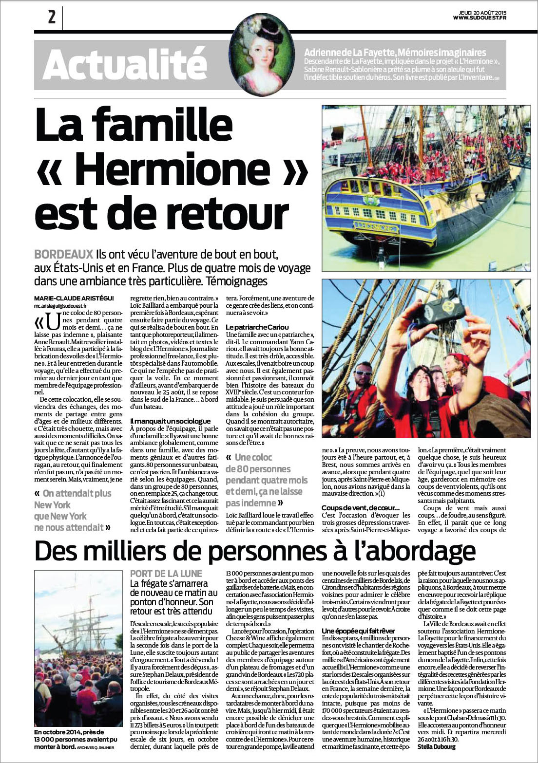 L’arrivée de l’Hermione à Bordeaux, ce matin,