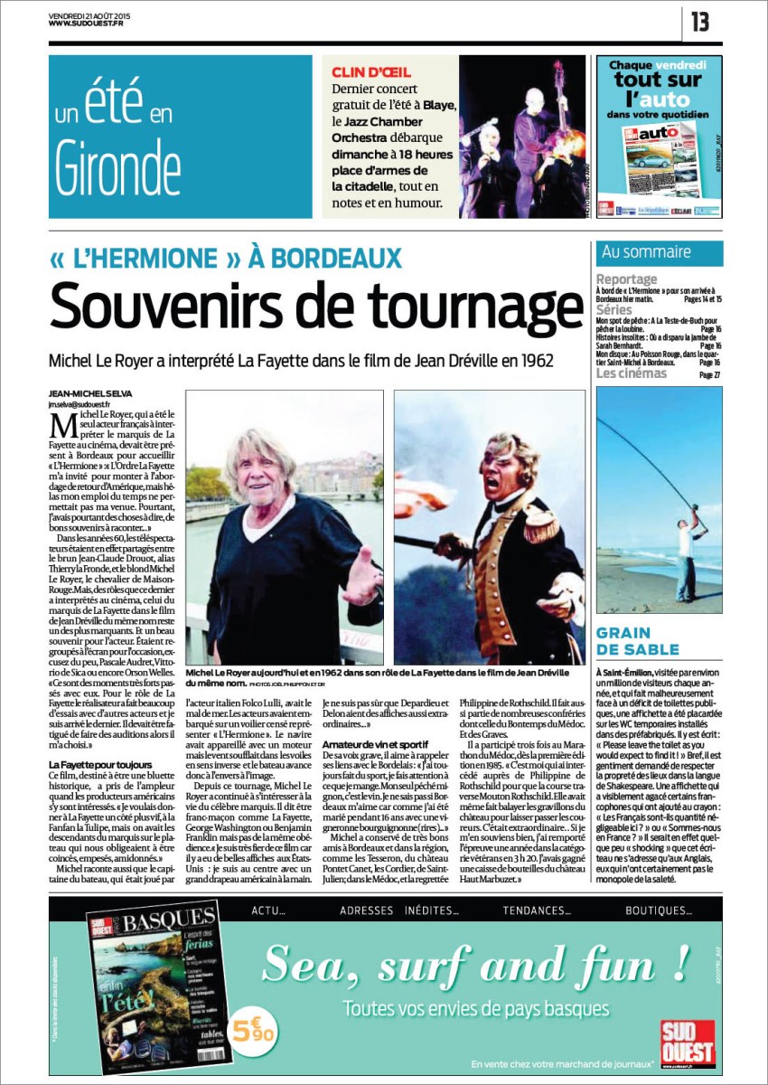 Sud-Ouest 21 Août 2015 – P13 – Hermione à Bordeaux 15 septembre 2015 1104 × 1559 L’Hermione : le retour d’Amérique !