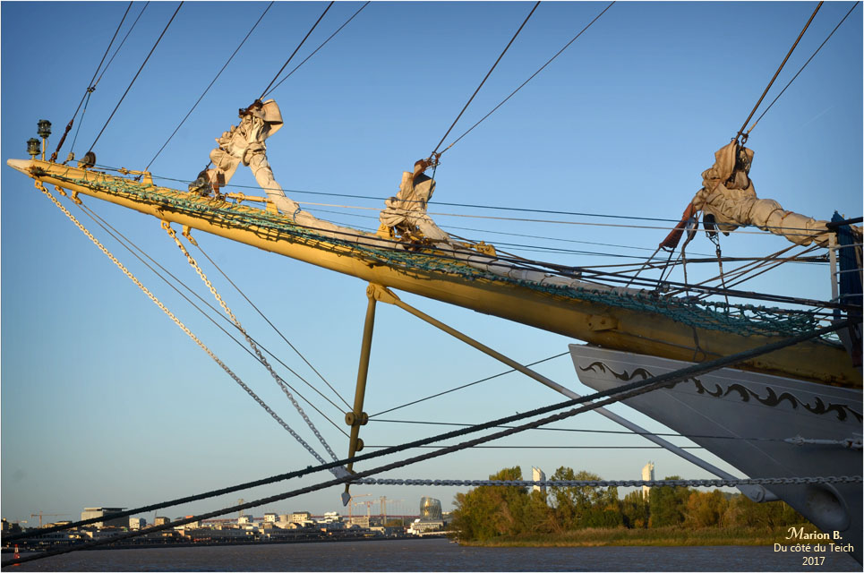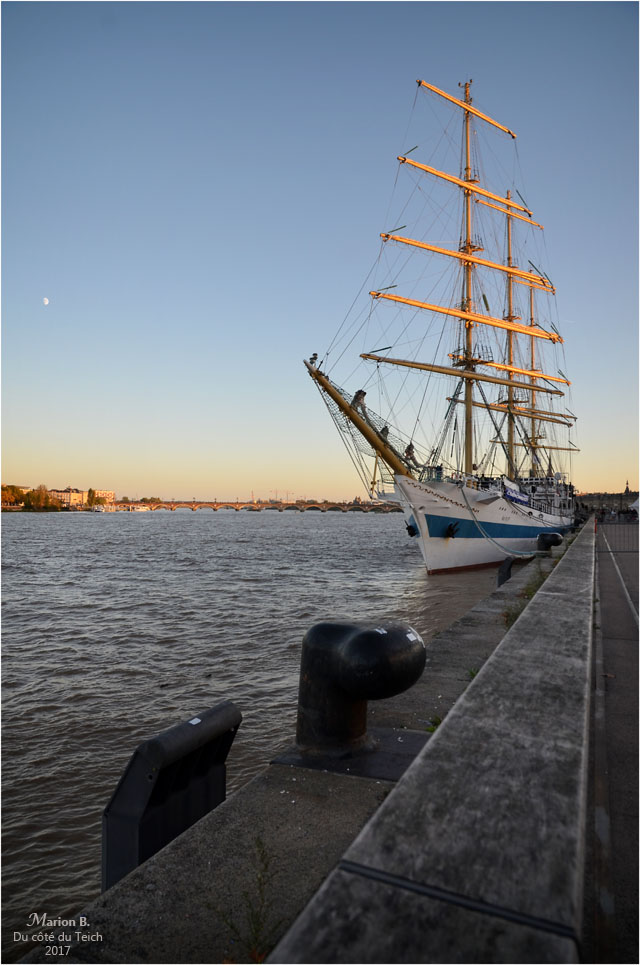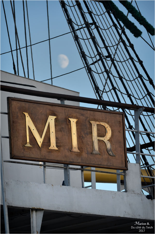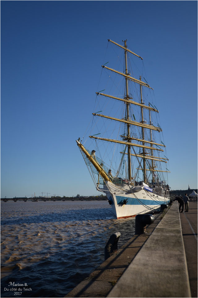 6. Je ne l’ai pas vu à Bordeaux mais j’ai eu la chance de le voir au Havre cet été pour les grandes voiles du Havre avec une pléiade d’autres grands voiliers et avec un autre voilier Russe à quai juste à coté aussi imposant. J’avais peu de temps je devais être à la Baule en fin d’après midi, j’ai eu juste la fin de matinée pour visiter le Mir qui me paraissait le plus intéressant à voir. Les grandes voiles du havre ont été un vrai événement avec les plus grands voiliers de tous les pays, j’ai fait des photos en vol à mon départ pour la Baule,que je publiais un jour.
