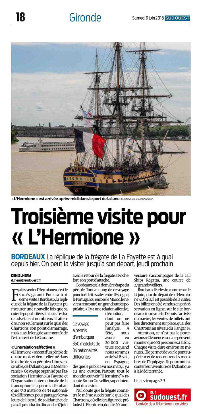 Au sujet de la visite de l’Hermione à Bordeaux :
