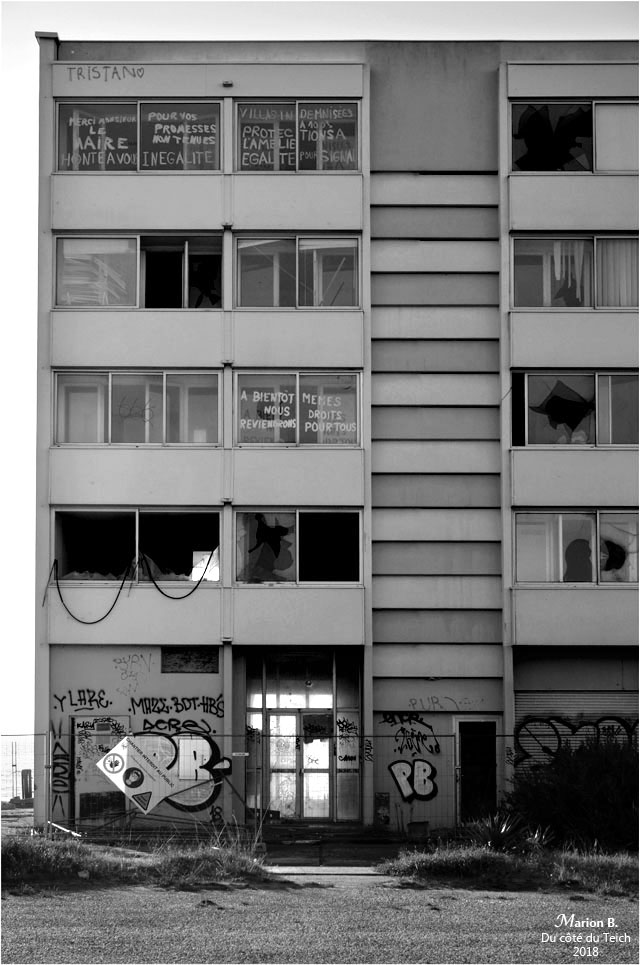 Actualité oblige, retour à Soulac (dont je finis à l’instant de poster les photos), où débutent les opérations préparatoires au désamiantage de l’immeuble « le Signal », condamné à la démolition du fait du recul du trait de côte.