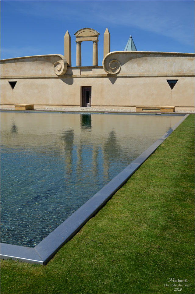 Depuis lors, le château du XIXème est magnifié par un miroir d’eau qui s’étend à ses pieds. Et sous ses reflets argentés se cache depuis 2008, un chai enterré