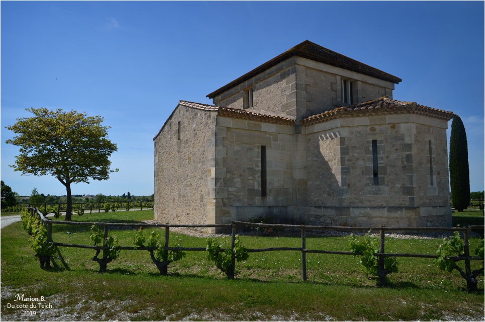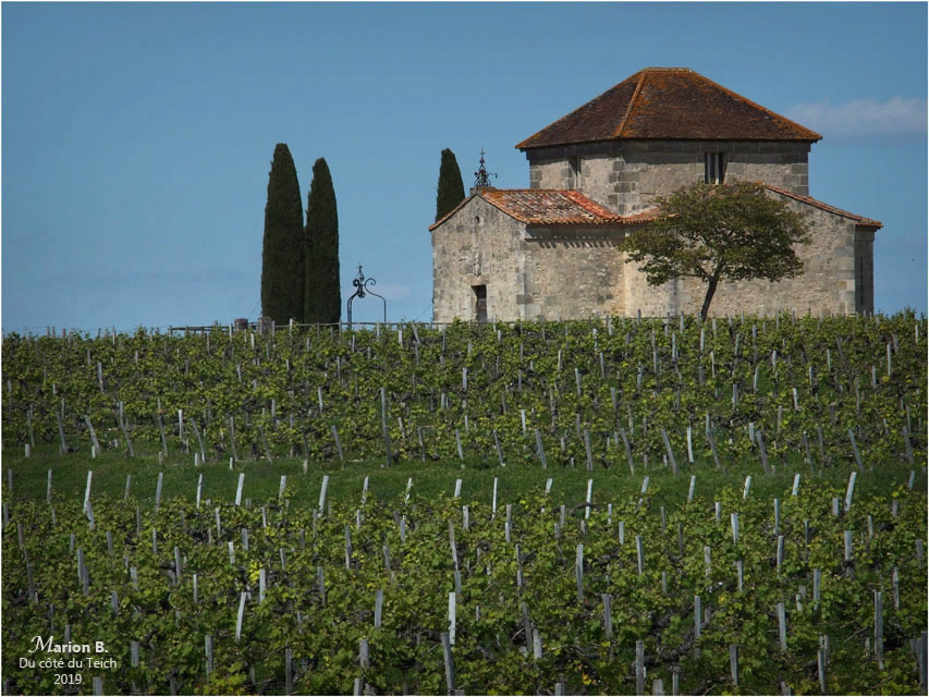Originale cette chapelle située au milieu des vignobles bordelais .