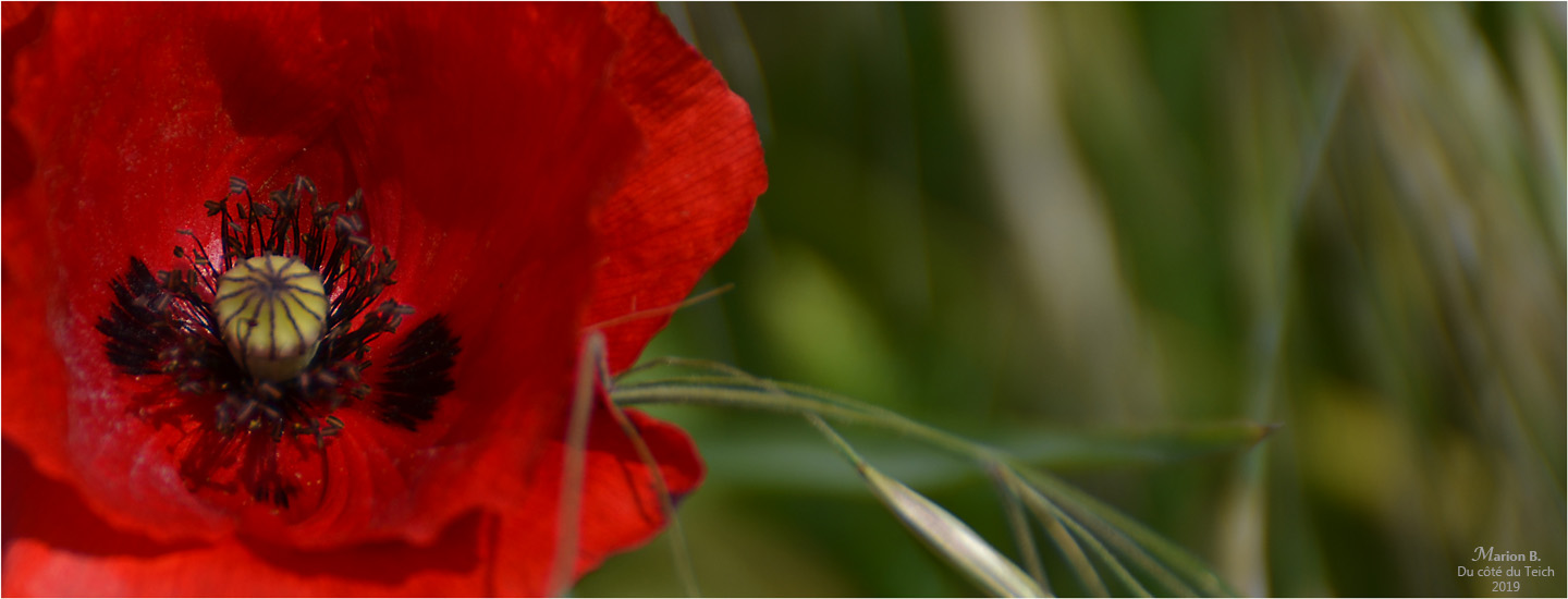 Le coquelicot (coquelicoq en vieux françois !), appelé aussi pavot-coq, pavot des champs, pavot sauvage, poinceau, ponceau, est le symbole du repos, de la quiétude et de la consolation. de la beauté éphémère, l’ardeur fragile et la fertilité. Oui, tout ça !!